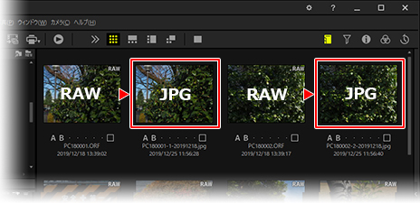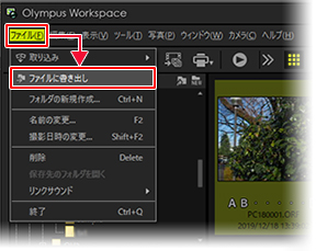 OM Workspace を使用して、カメラで撮影した RAW データの画像を、JPEG 形式の画像として保存する方法を説明します。