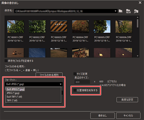 OM Workspace で RAW 画像を JPEG 形式の画像で保存する方法は以上です。